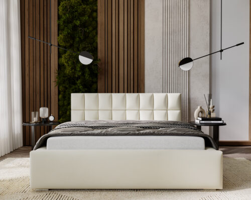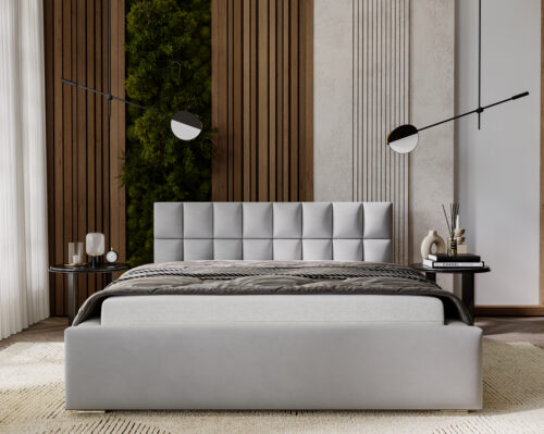 FurMeb24 – BELLA – Polsterbett aus Holzrahmen , Doppelbett mit höher Kopstütze – Mit Matraze – Kronos