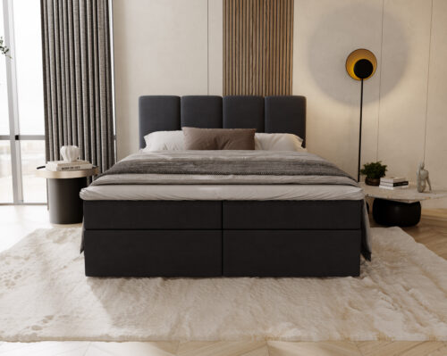 FurMeb24 – CARLO – Boxspringbett mit Bettkasten inclusive Belluci Classic Matratze – Polsterbett mit Holzrahmen – Doppelbett mit höher Kopstütze