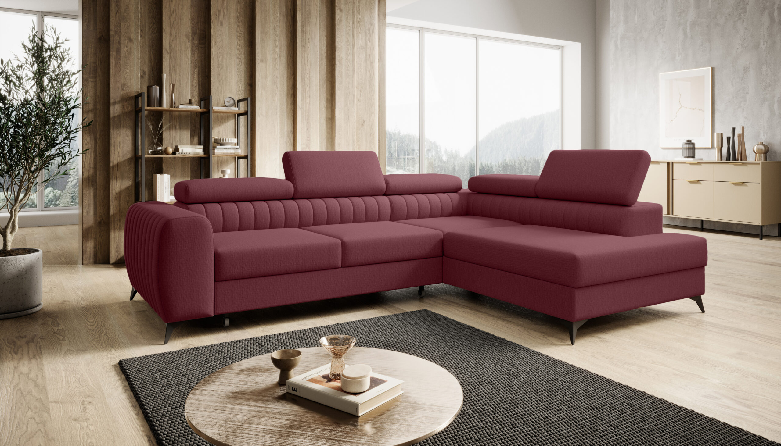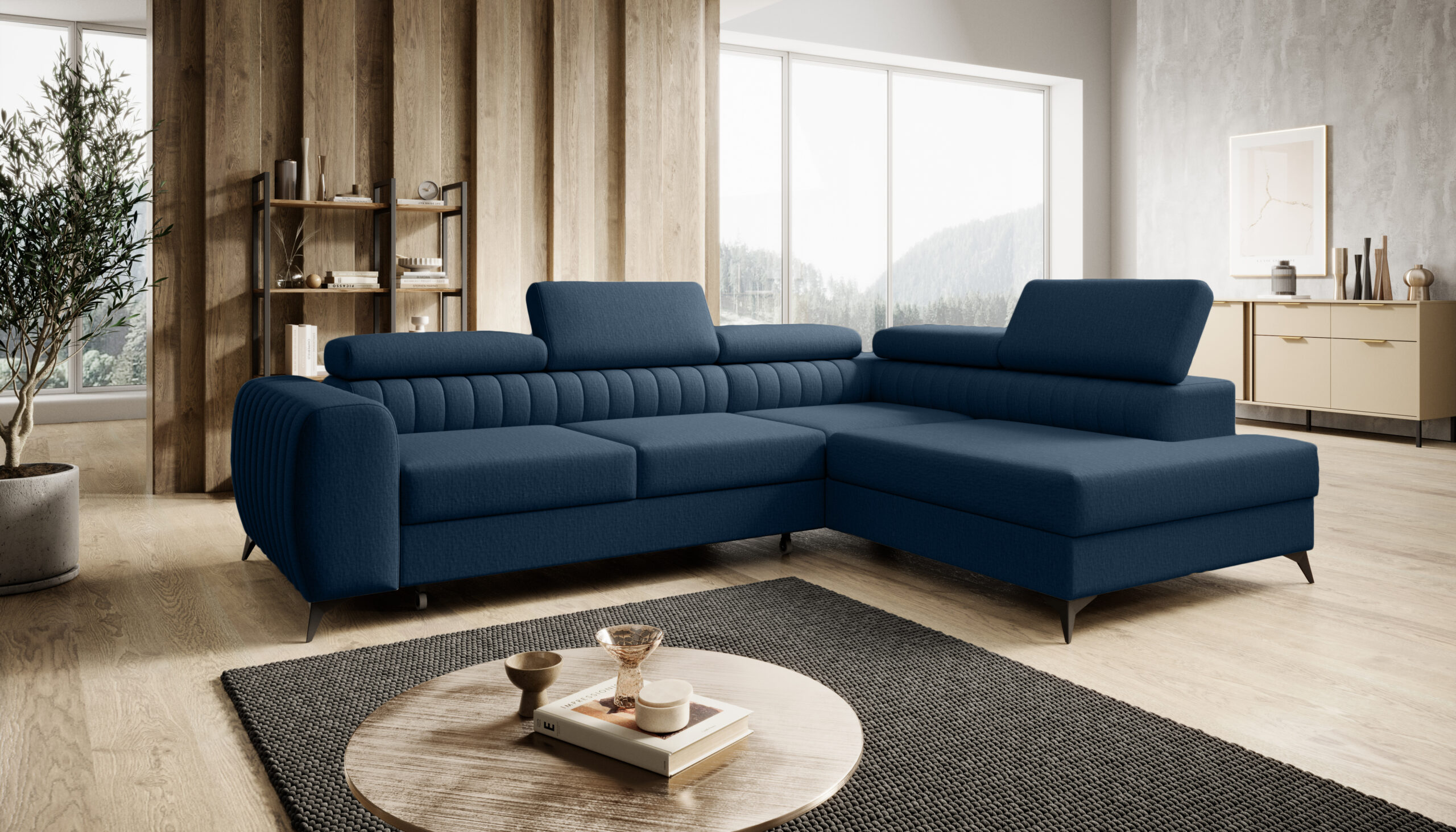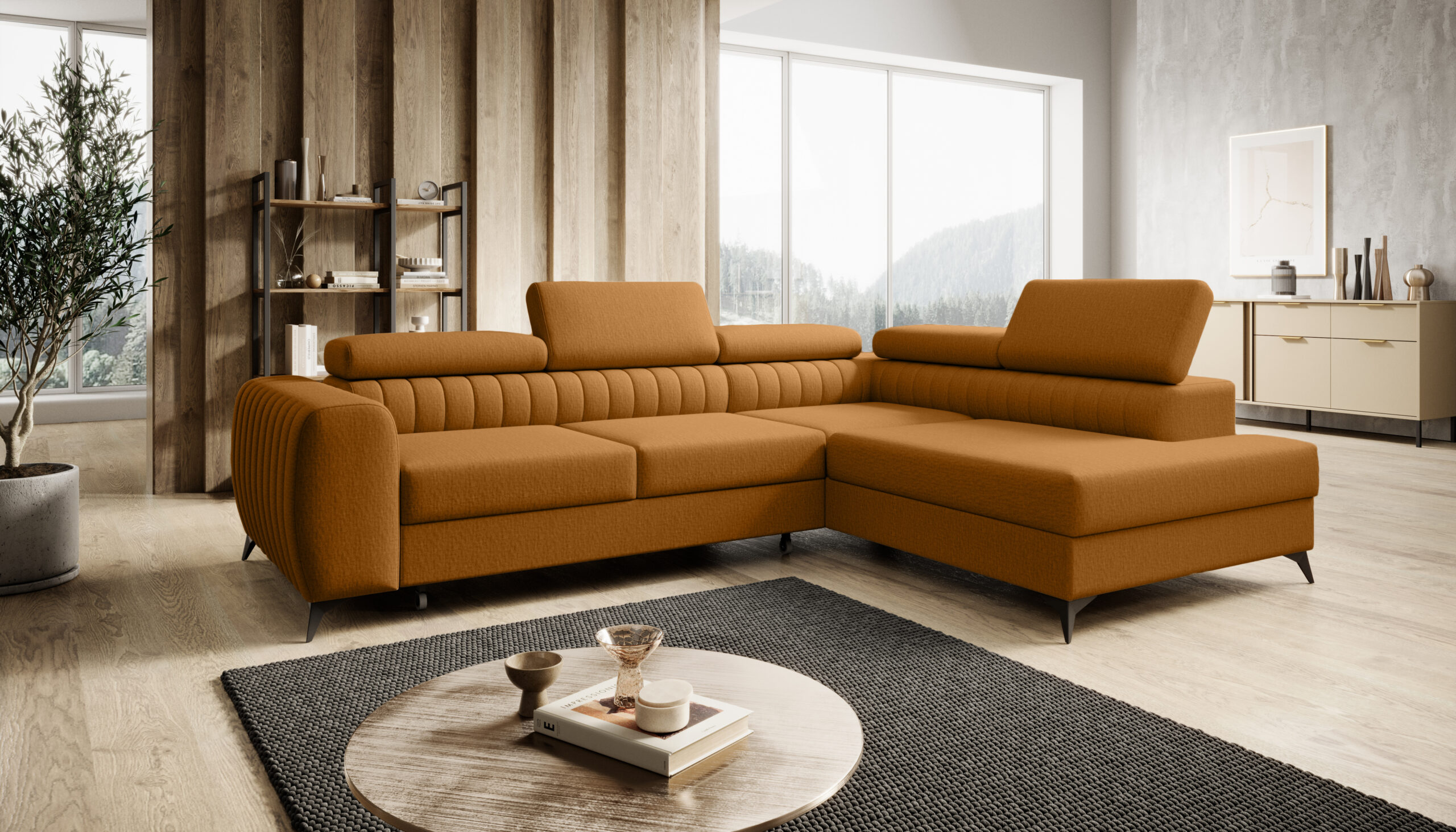 Das Ecksofa ALVIN L verbindet modernes Design mit durchdachter Funktionalität und hohem Sitzkomfort. Ideal für stilvolle Wohnzimmer, bietet dieses Modell nicht nur ein elegantes Erscheinungsbild, sondern auch praktische Lösungen für den Alltag – wie eine großzügige Schlaffunktion, integrierten Bettkasten und verstellbare Kopfstützen (5 Stück).