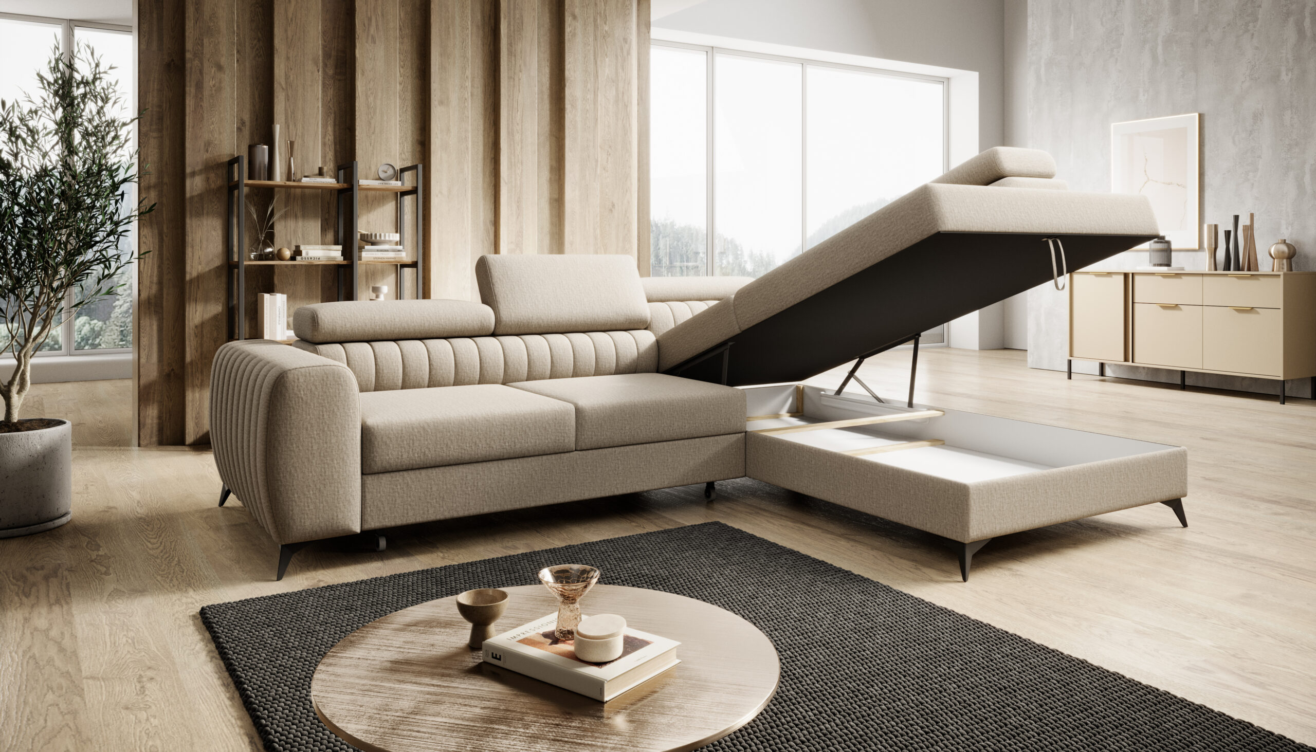 ALVIN L – Funktionales Ecksofa mit Schlaffunktion und Bettkasten