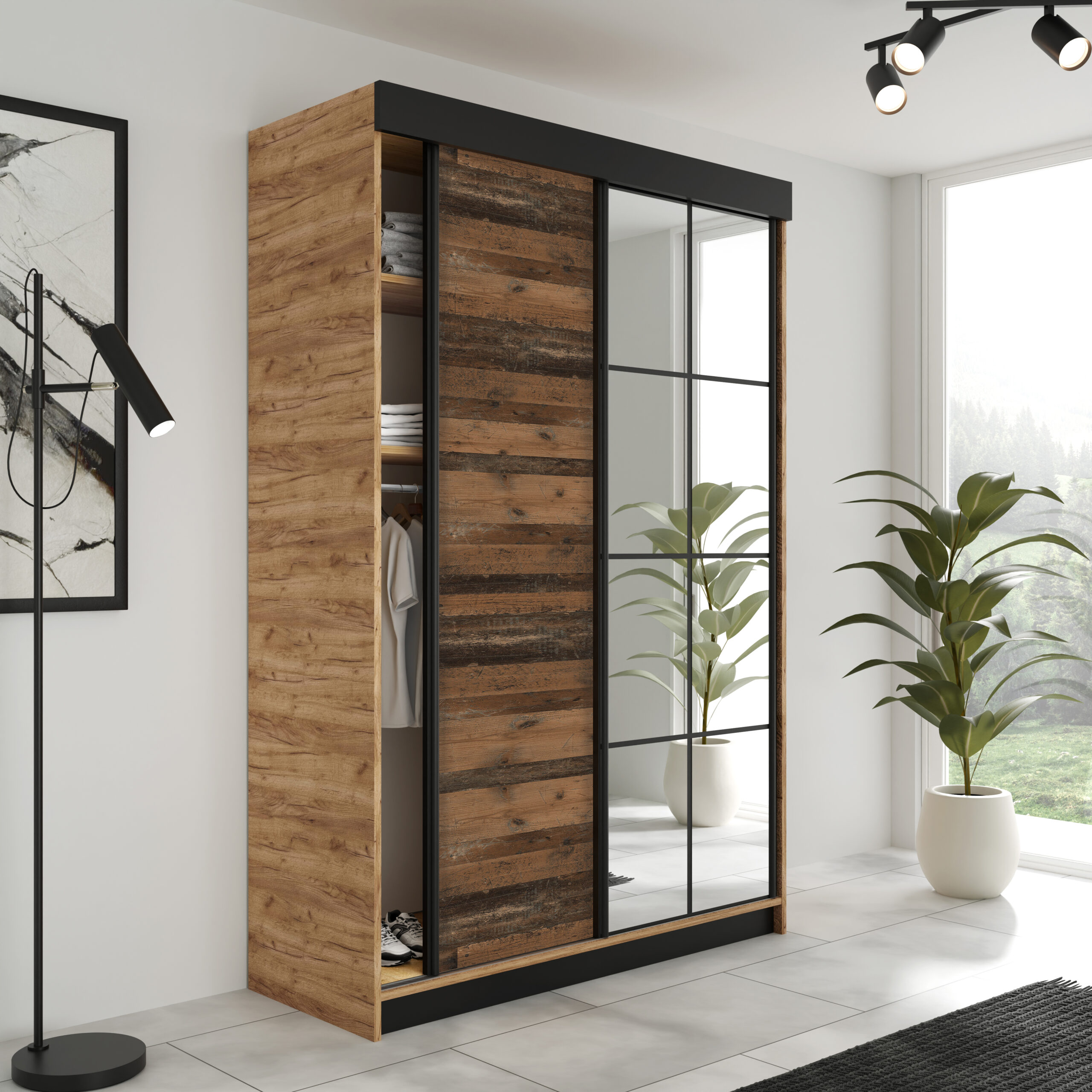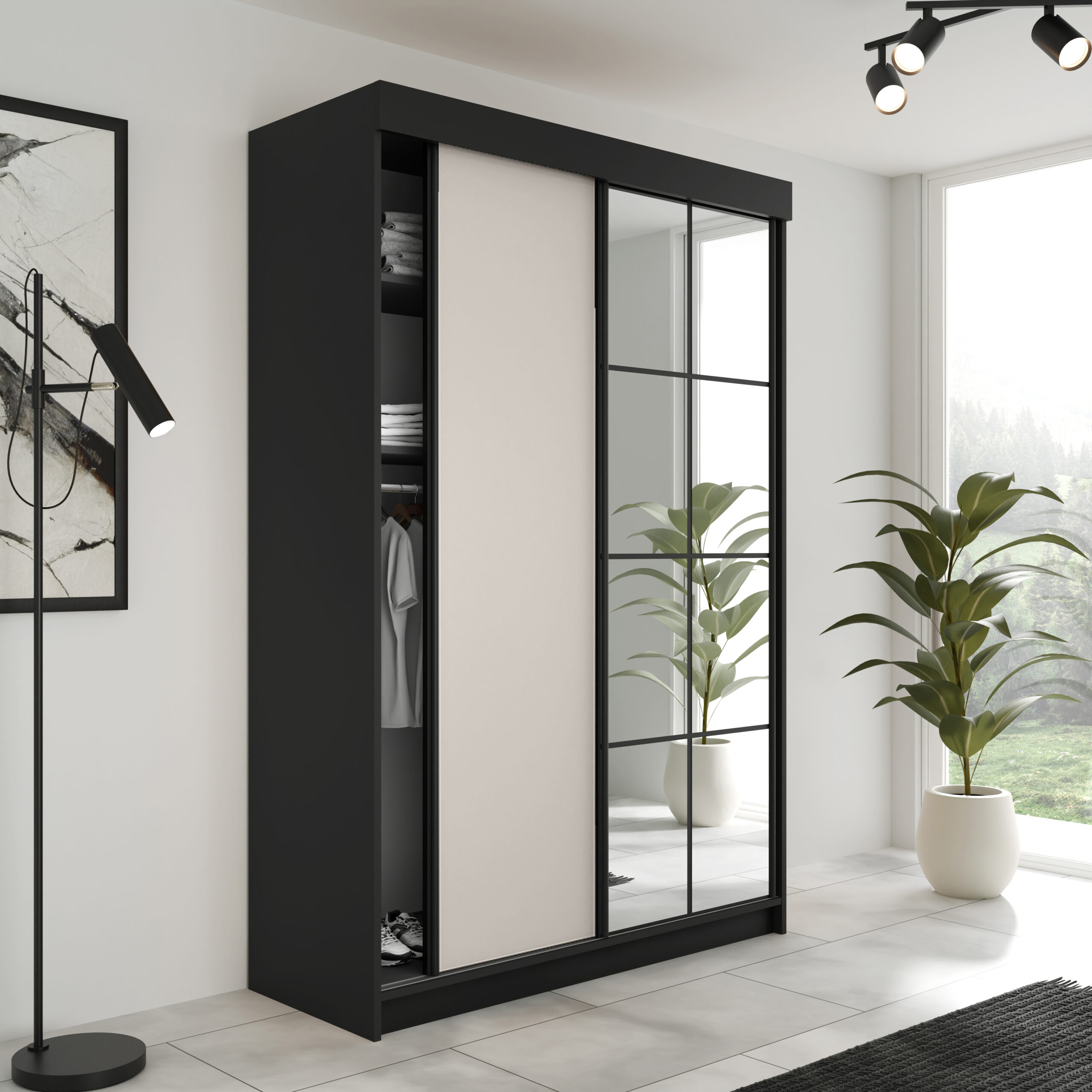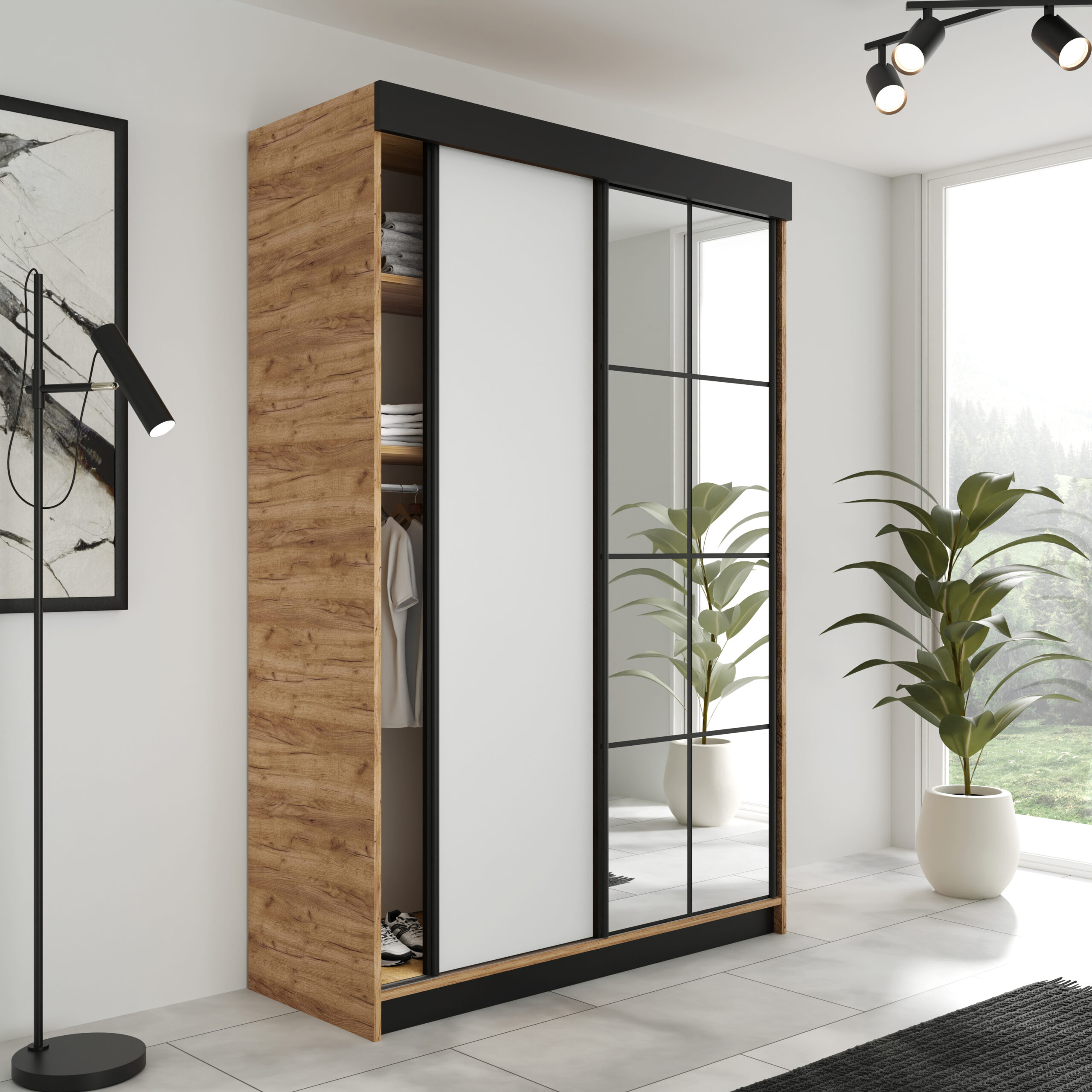 Der Kleiderschrank LAMER ist eine moderne und platzsparende Lösung für Schlafzimmer, Ankleidezimmer oder Flur. Dank der Schiebetüren benötigt er keinen zusätzlichen Öffnungsraum und eignet sich ideal auch für kleinere Räume.