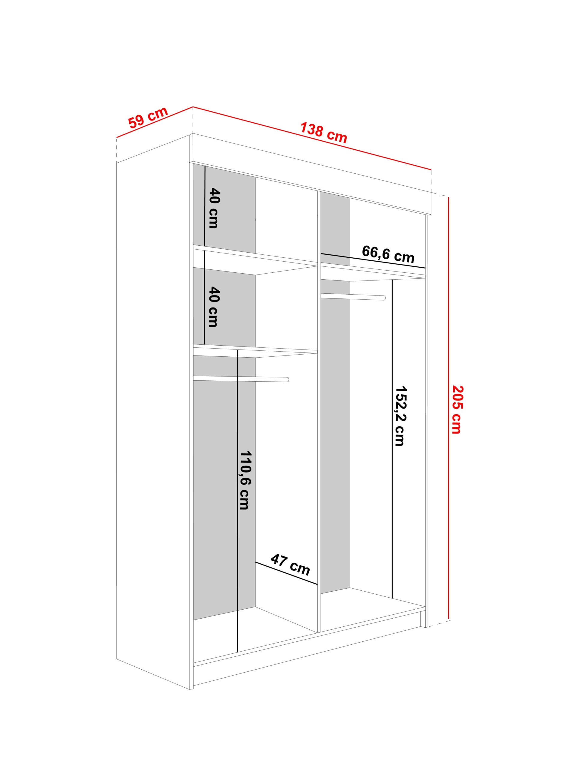 FurMeb24 2-türiger Schiebetürenschrank LAMER 138×205 cm Kleiderschrank mit Spiegel