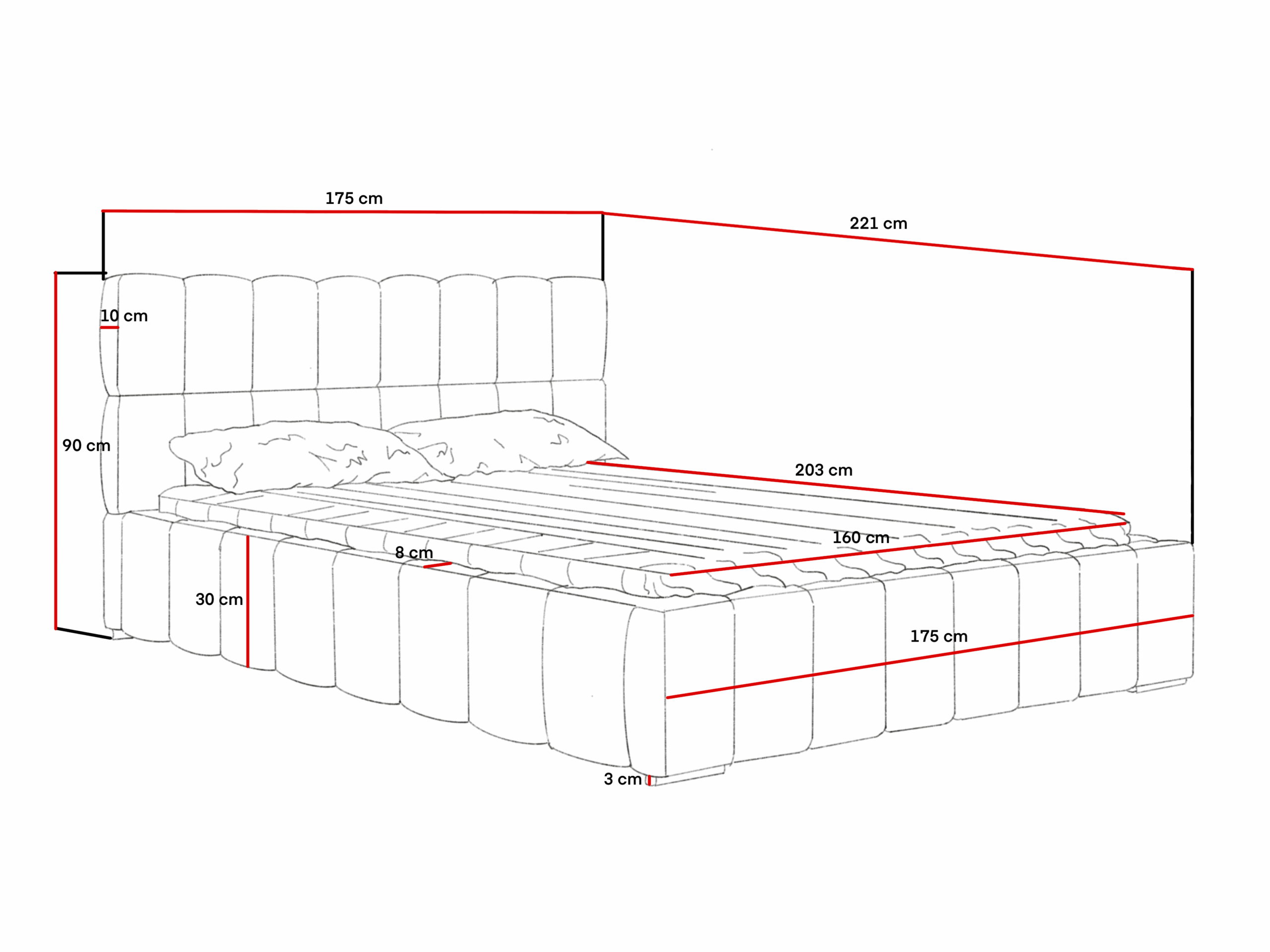 Das Polsterbett ALMA vereint stilvolles Design mit hohem Schlafkomfort. Die modernen, vertikalen Steppnähte am hohen Kopfteil sowie die weich gepolsterten Seiten verleihen dem Bett eine elegante und gemütliche Ausstrahlung. Dank verschiedener Breitenoptionen passt das Modell ALMA sowohl in kleinere Schlafzimmer als auch in großzügige Räume.