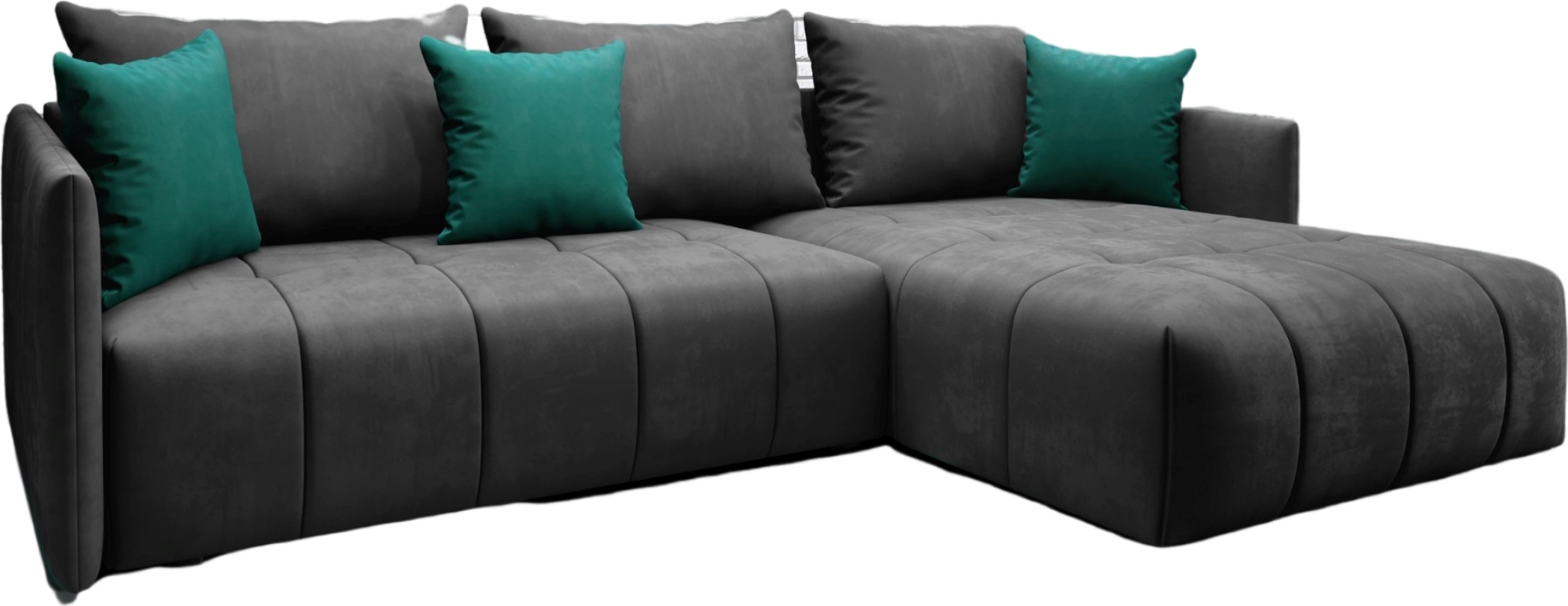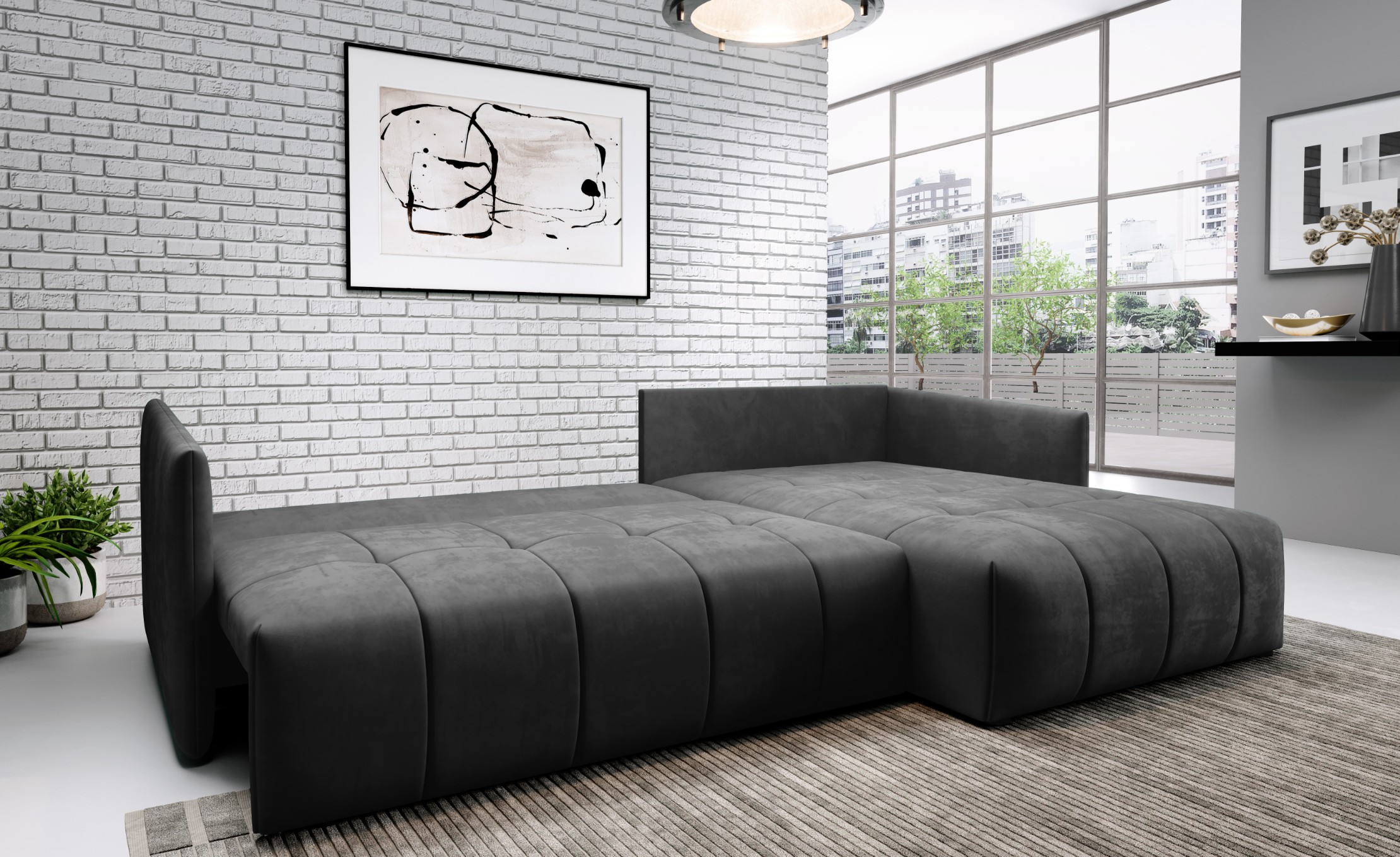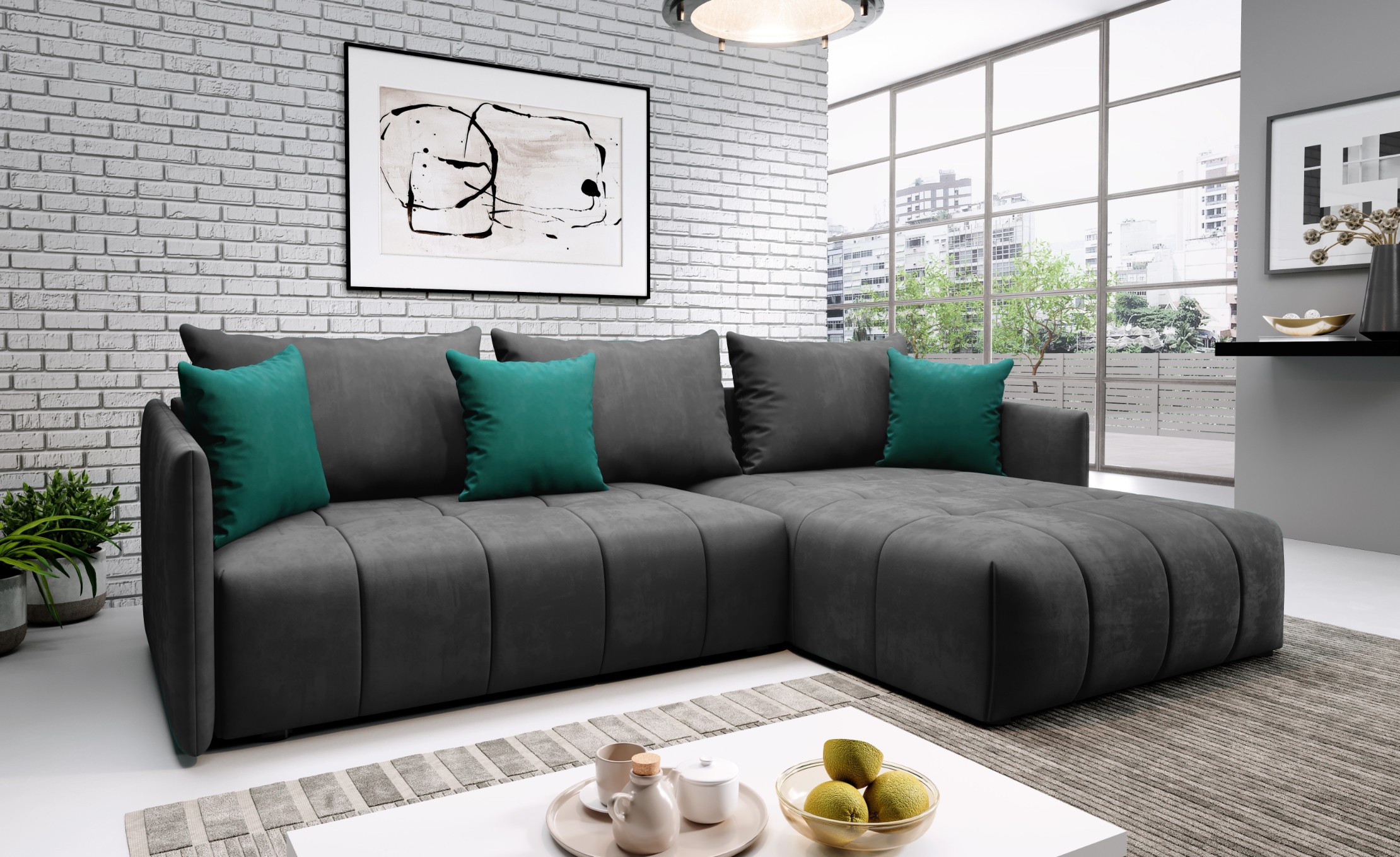 Die DON-Ecke verbindet modernes Design mit präziser Verarbeitung und fügt sich perfekt in jedes Interieur ein. Ideal für Wohnzimmer, eignet es sich auch als Schlafplatz für den täglichen Schlaf dank der Verwendung von Wellenfedern. Elegante Nähte und gesteppter Sitz verleihen dem Möbelstück einen modernen und stilvollen Charakter.
