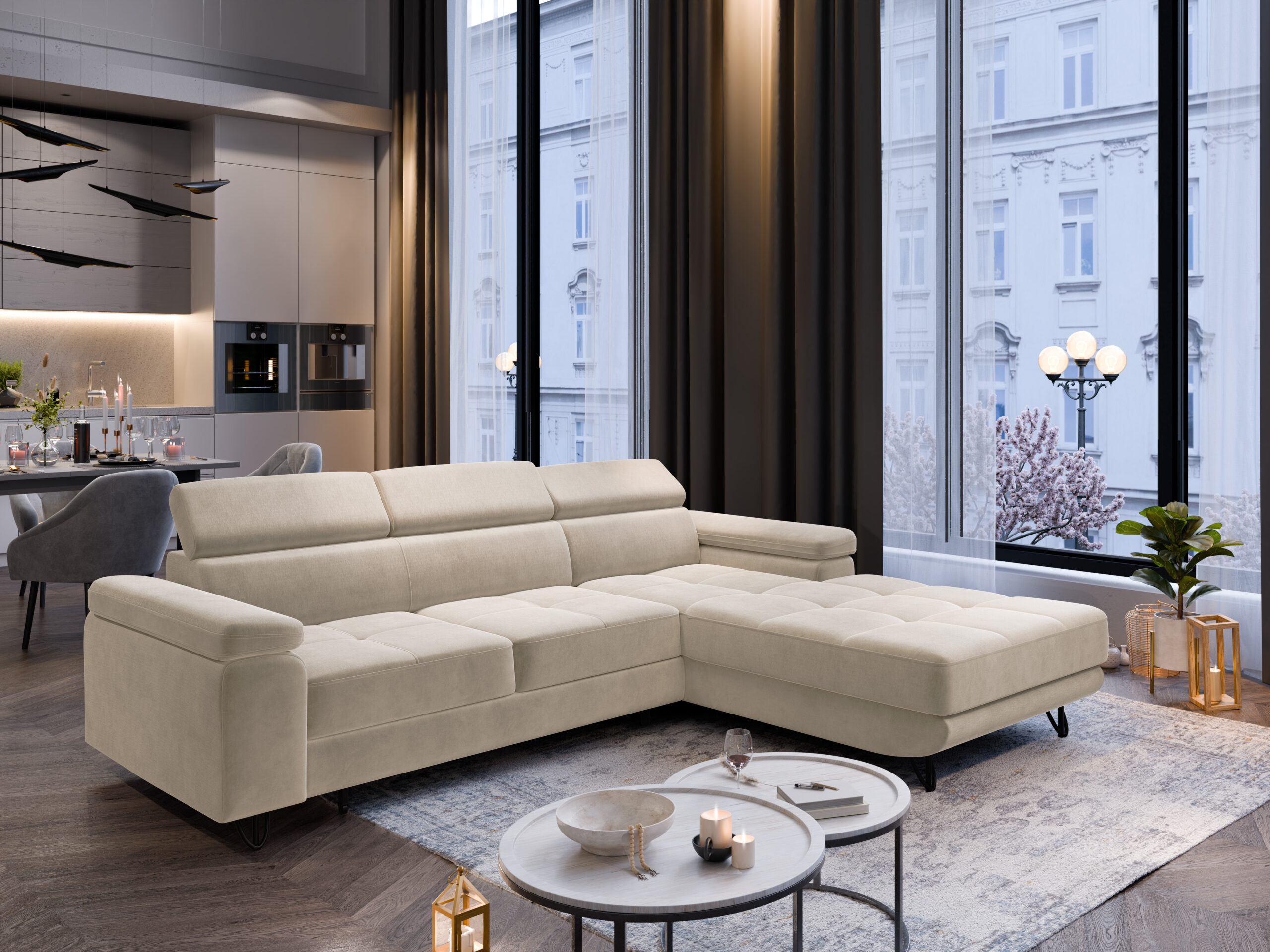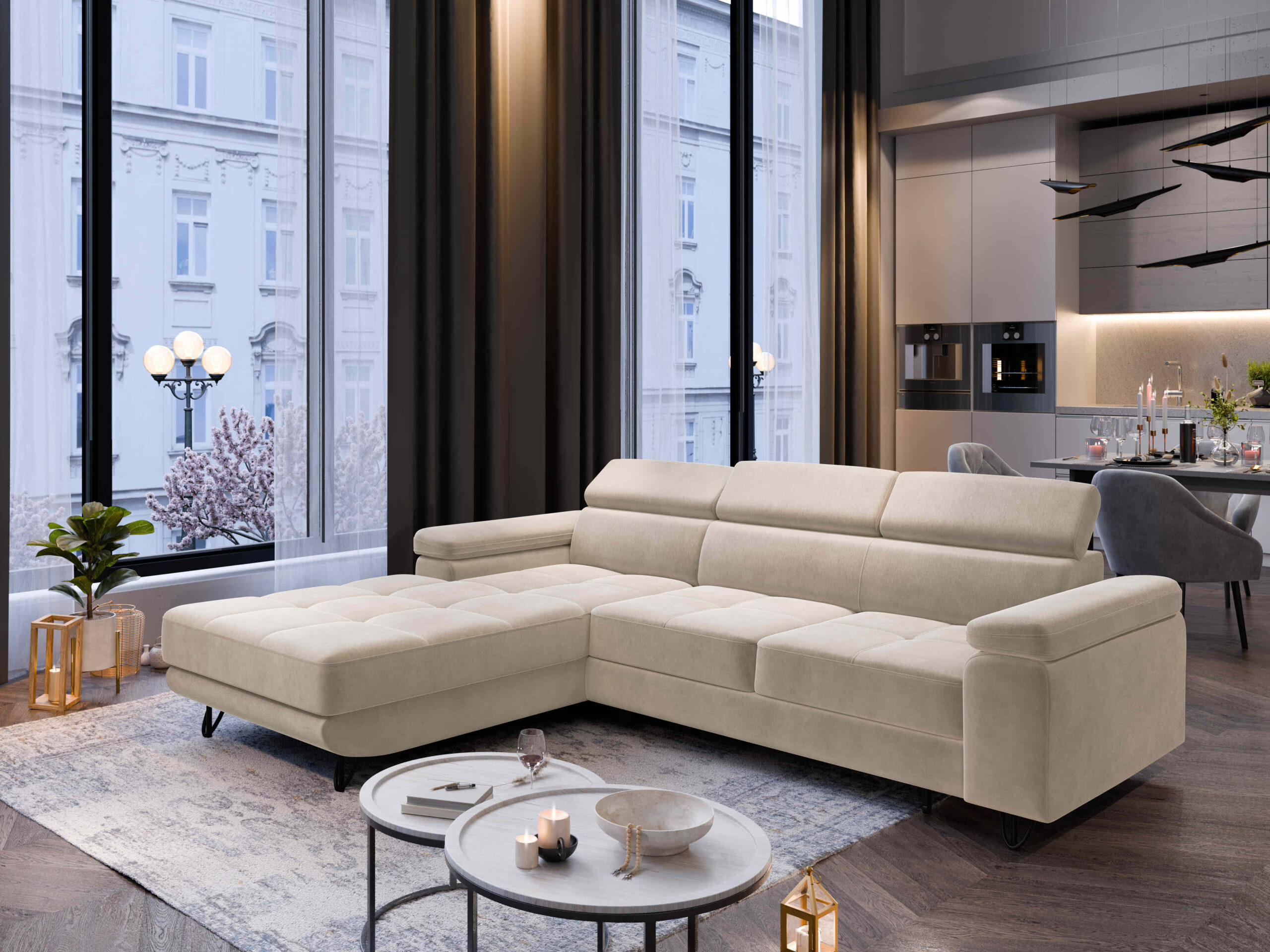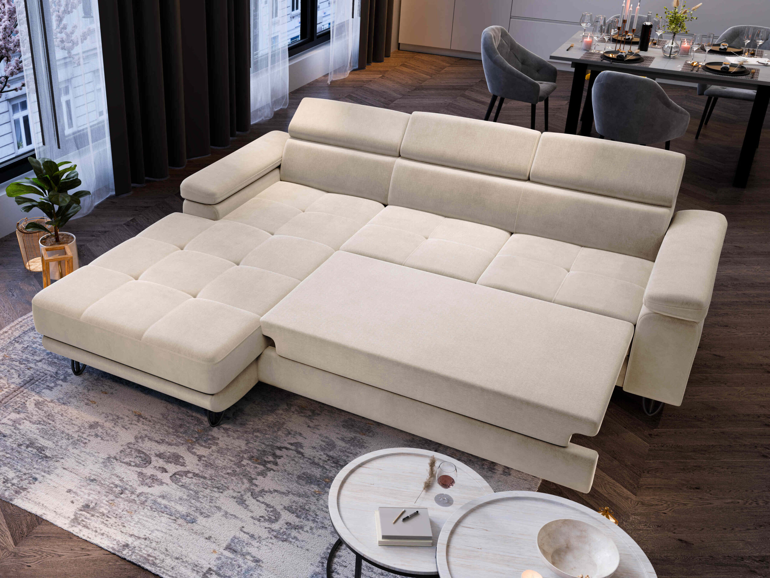 Das Ecksofa OLIVIO ist die perfekte Wahl für alle, die Wert auf Komfort, Qualität und modernes Design legen. Durch die vielseitigen Funktionen passt es sich flexibel Ihren Bedürfnissen an – tagsüber stilvoll und gemütlich, nachts schnell zum Gästebett umwandelbar.