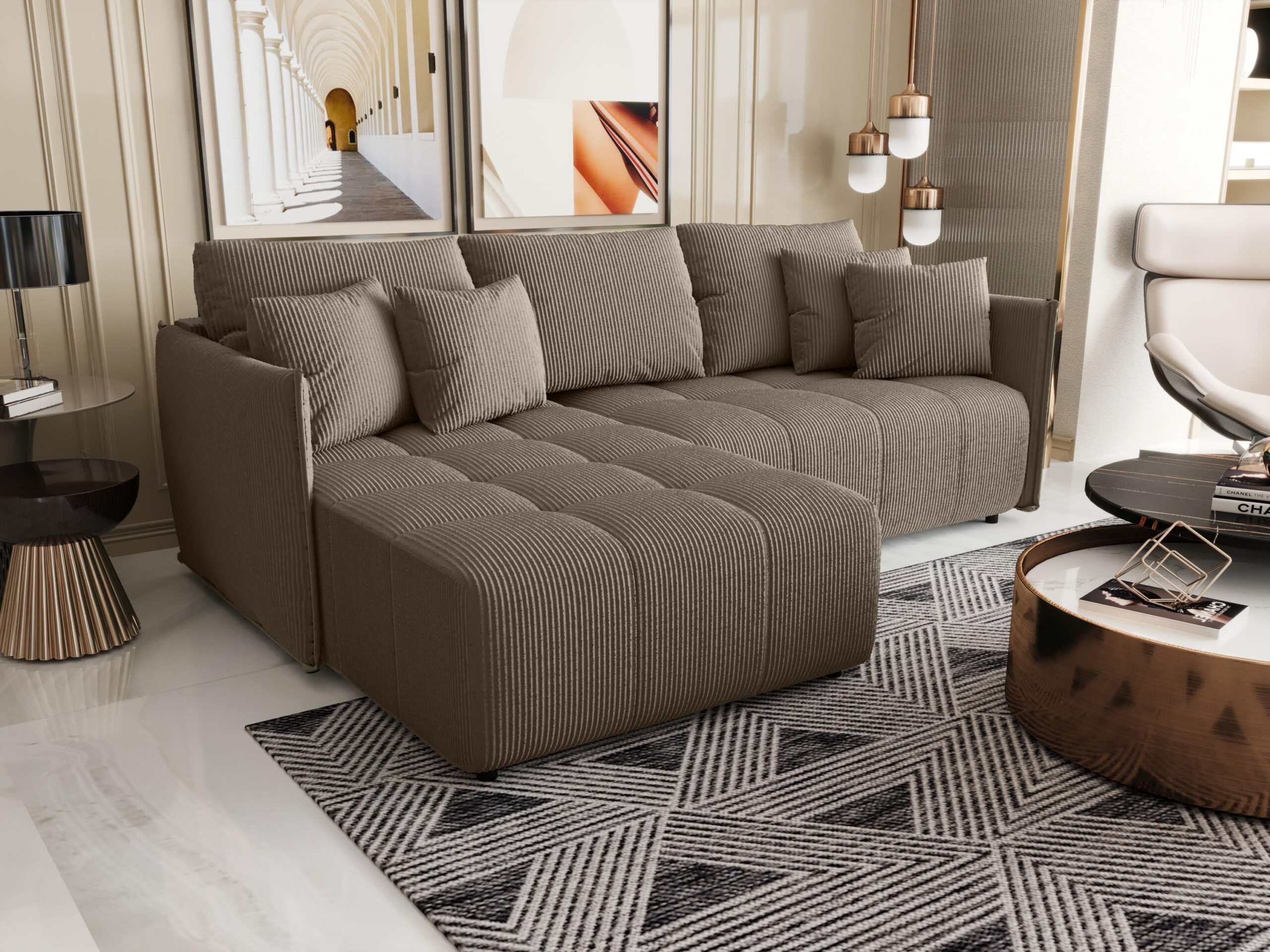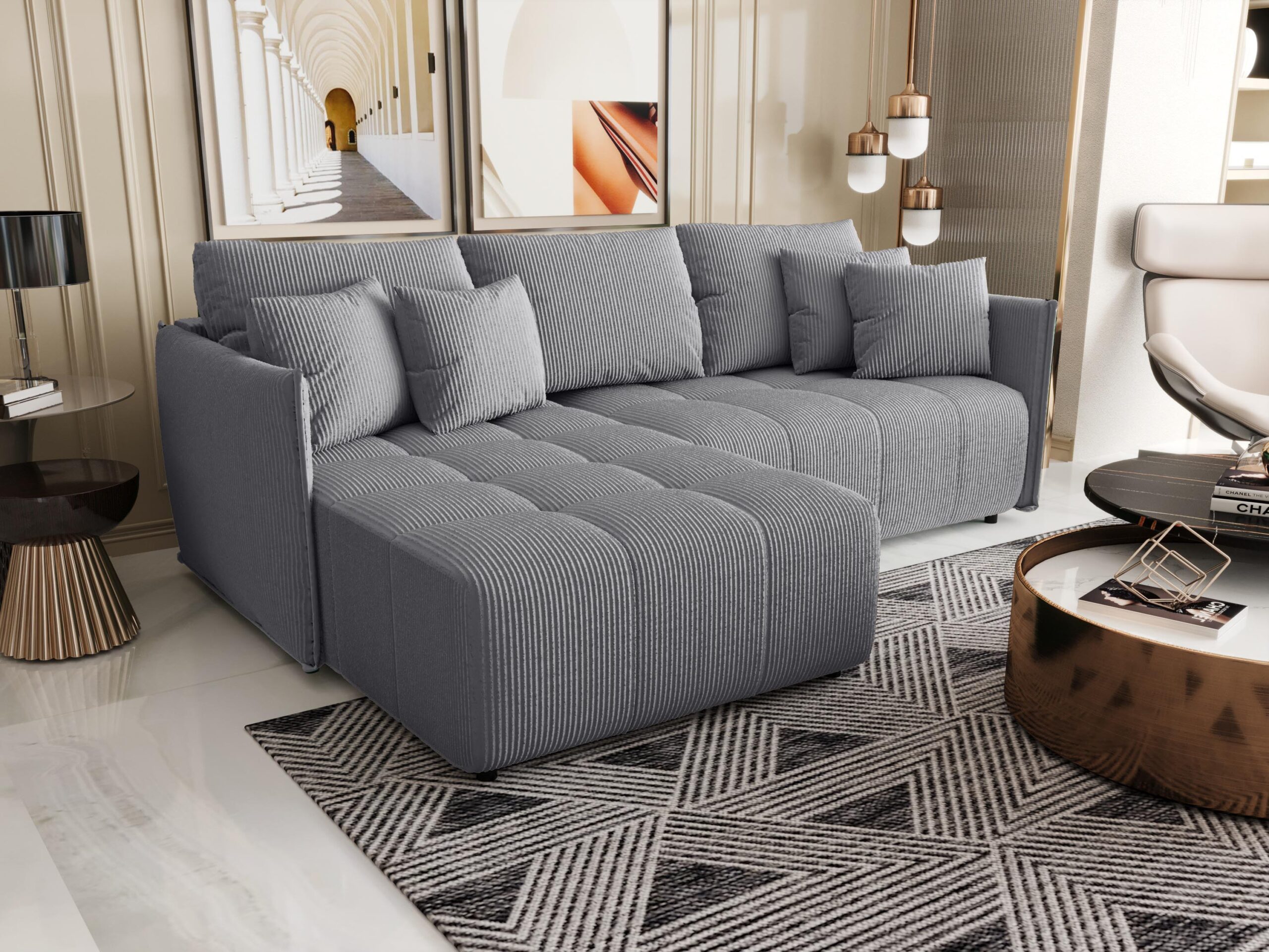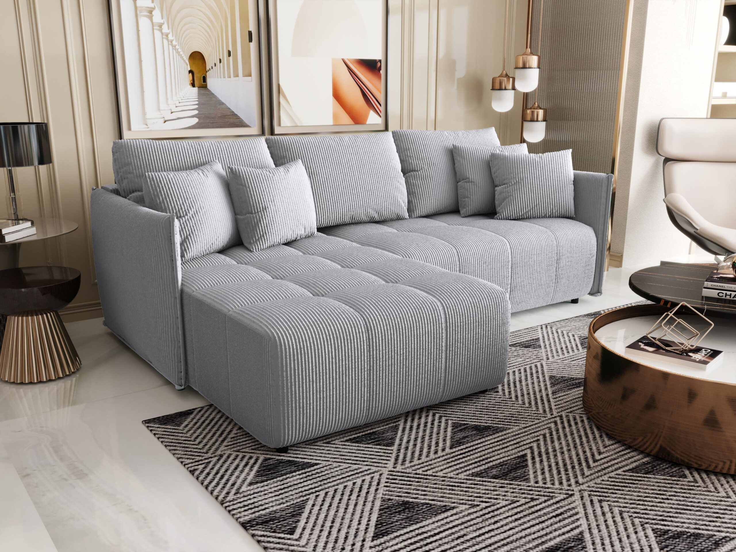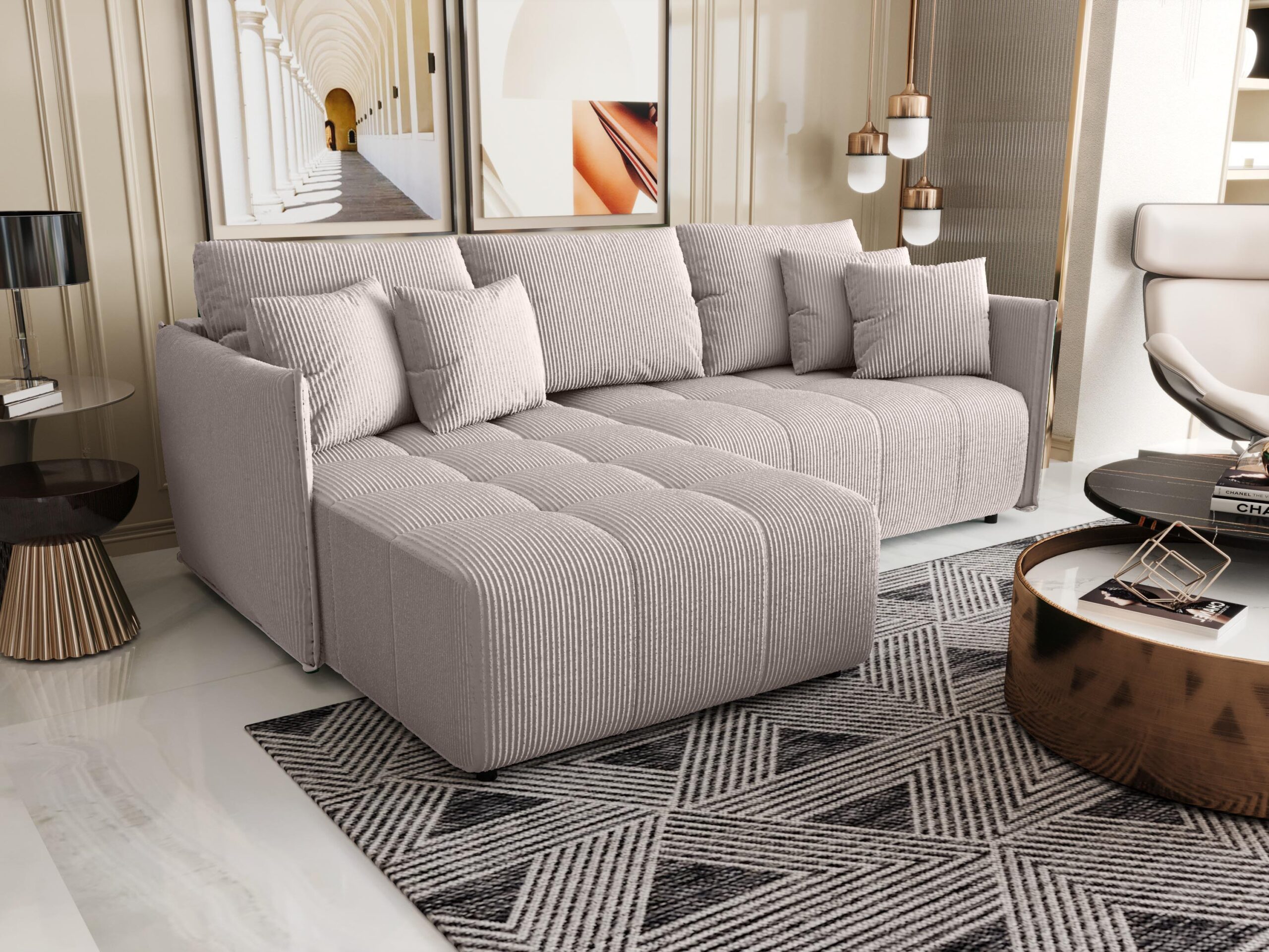 FURMEB24 L-förmiges Polstersofa Lino, mit Schlaffunktion, 240×175 cm, Bettzeugablage