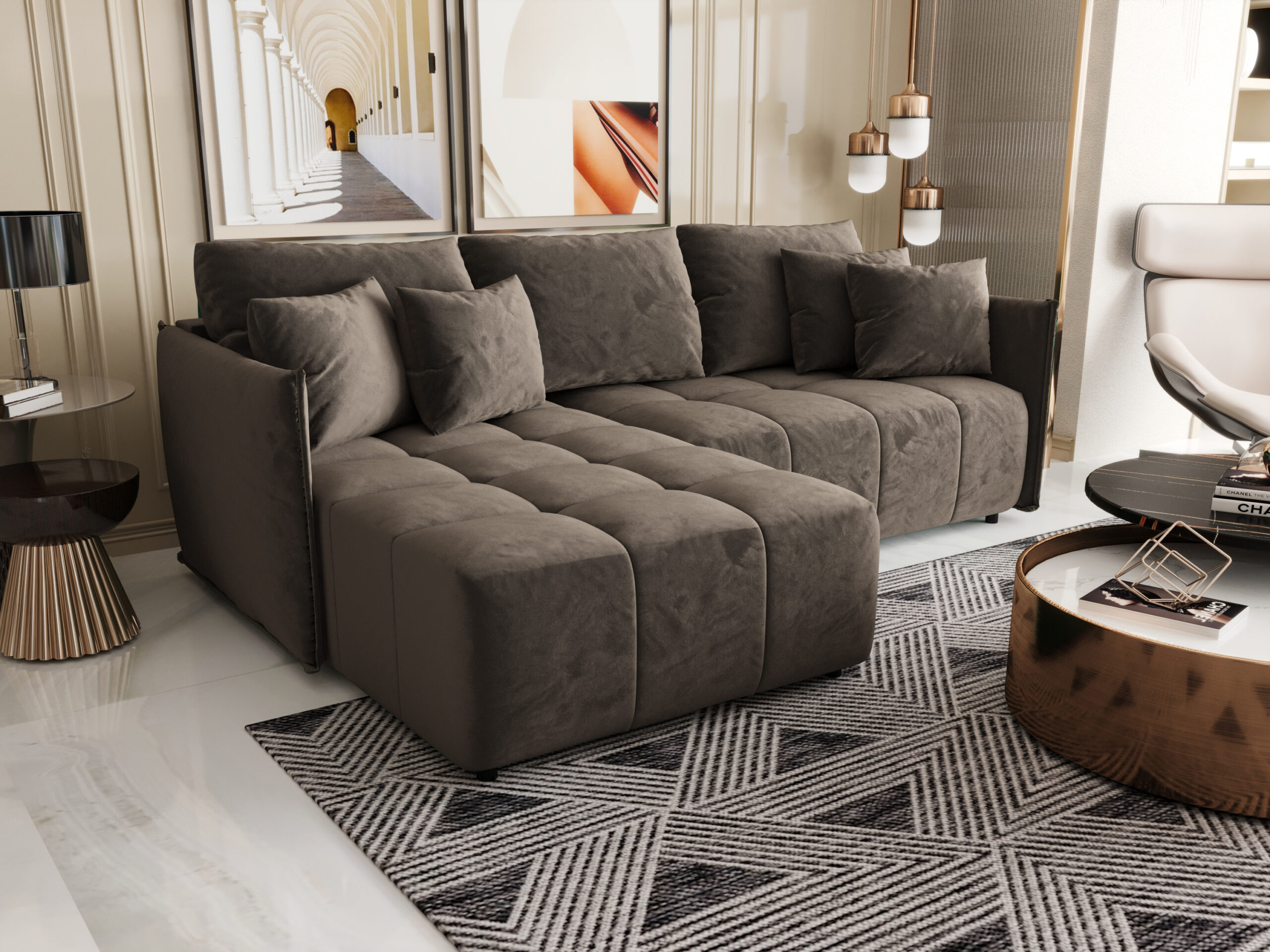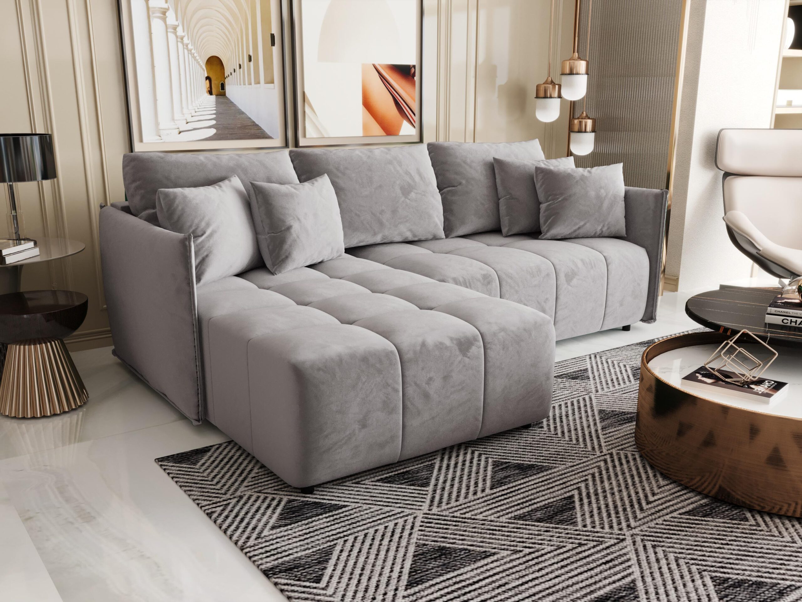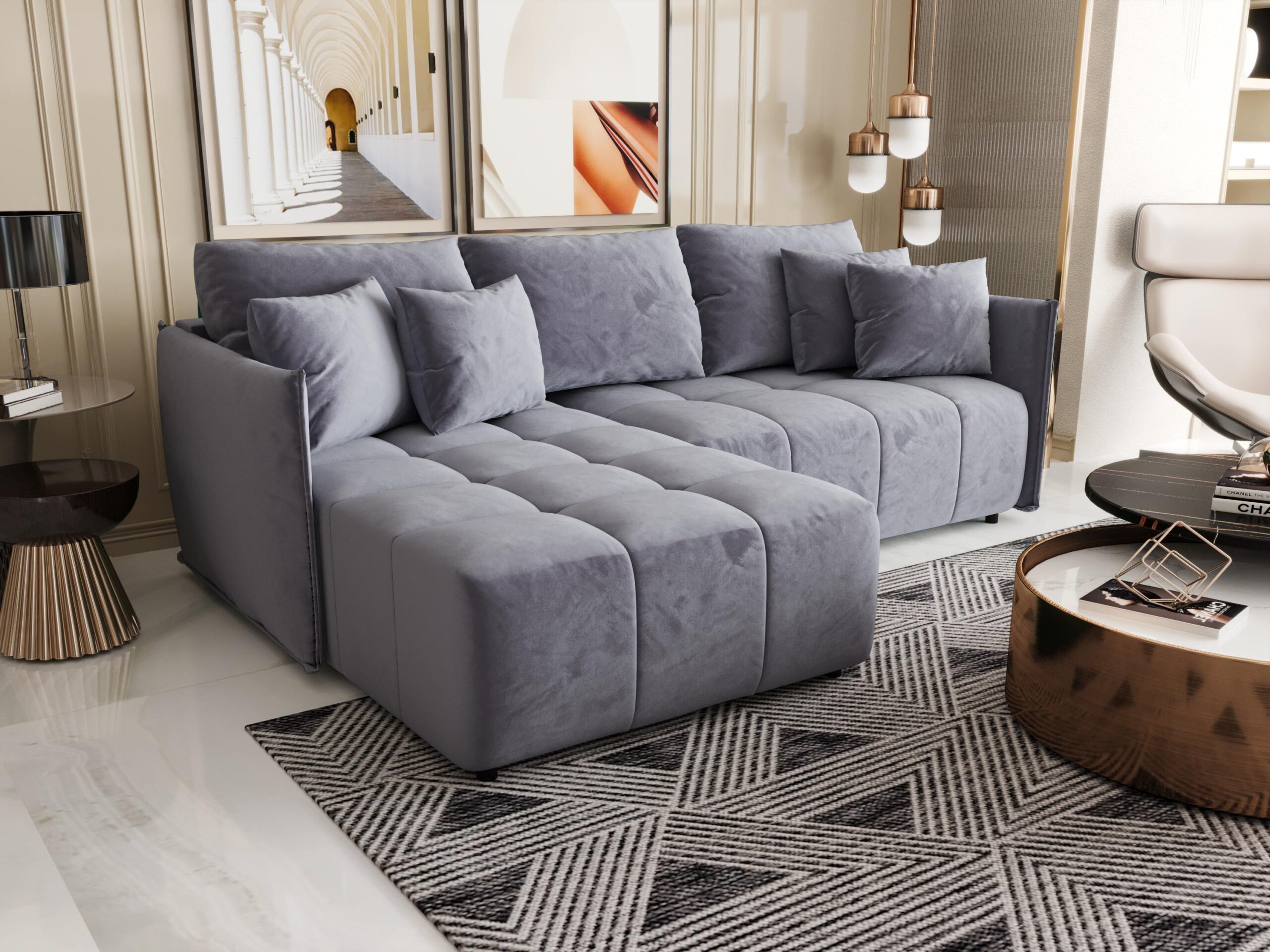 Das Ecksofa Lino L ist eine Kombination aus modernem Design und sorgfältiger Verarbeitung, die sich in jeden Raum einfügen wird. Das Ecksofa Lino L ist für das Wohnzimmer bestimmt, kann aber dank der gewellten Federn auch als bequemer Schlafplatz genutzt werden. Die sorgfältigen Nähte in Kombination mit dem gesteppten Sitz verleihen ihm einen modernen Charakter.
