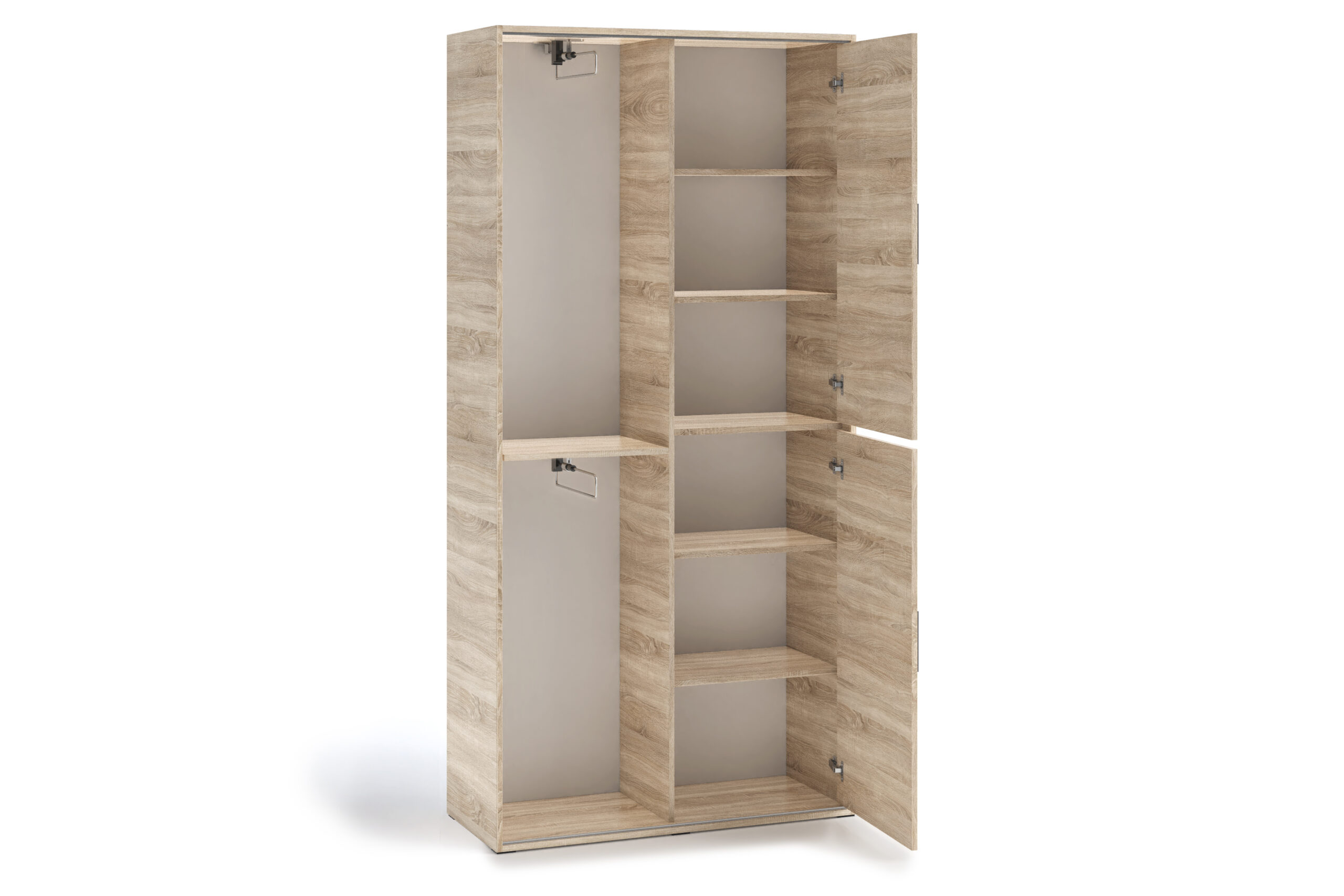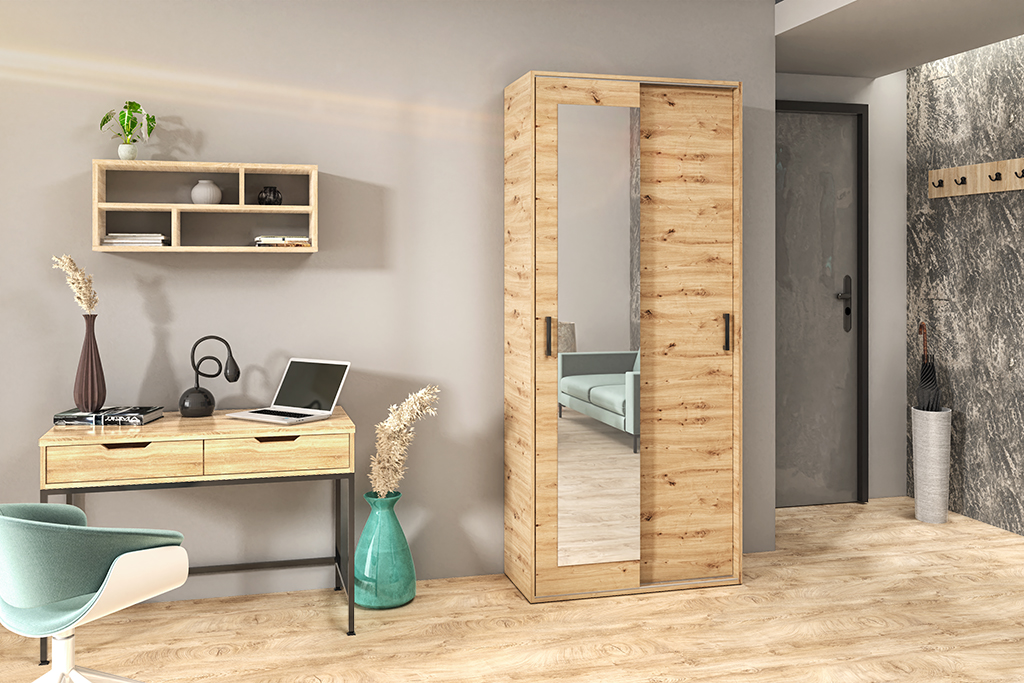 Der Kleiderschrank ARIMO ist modern, funktional und ideal für Schlafzimmer, Flur oder Ankleidezimmer. Gefertigt aus 16 mm laminierter Spanplatte mit ABS-Umleimung, ist er langlebig, pflegeleicht und kratzfest. Erhältlich in den Farben Artisan, Sonoma und Weiß, passt ARIMO zu verschiedenen Wohnstilen.