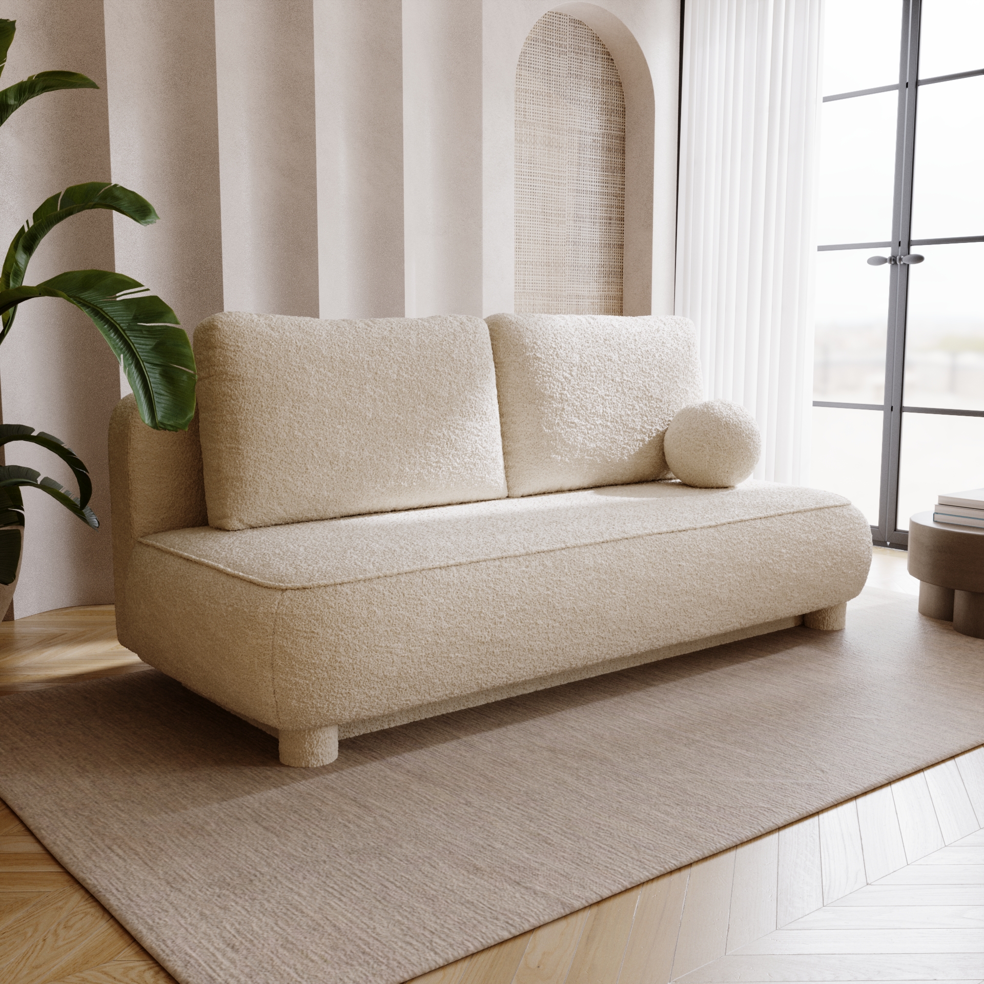 Die Sofa GLOW vereint minimalistisches Design mit einem gemütlichen Charakter und passt perfekt in moderne sowie skandinavische Wohnräume. Die weiche, angenehm strukturierte Oberfläche und die abgerundeten Formen verleihen jedem Raum Wärme und Stil.